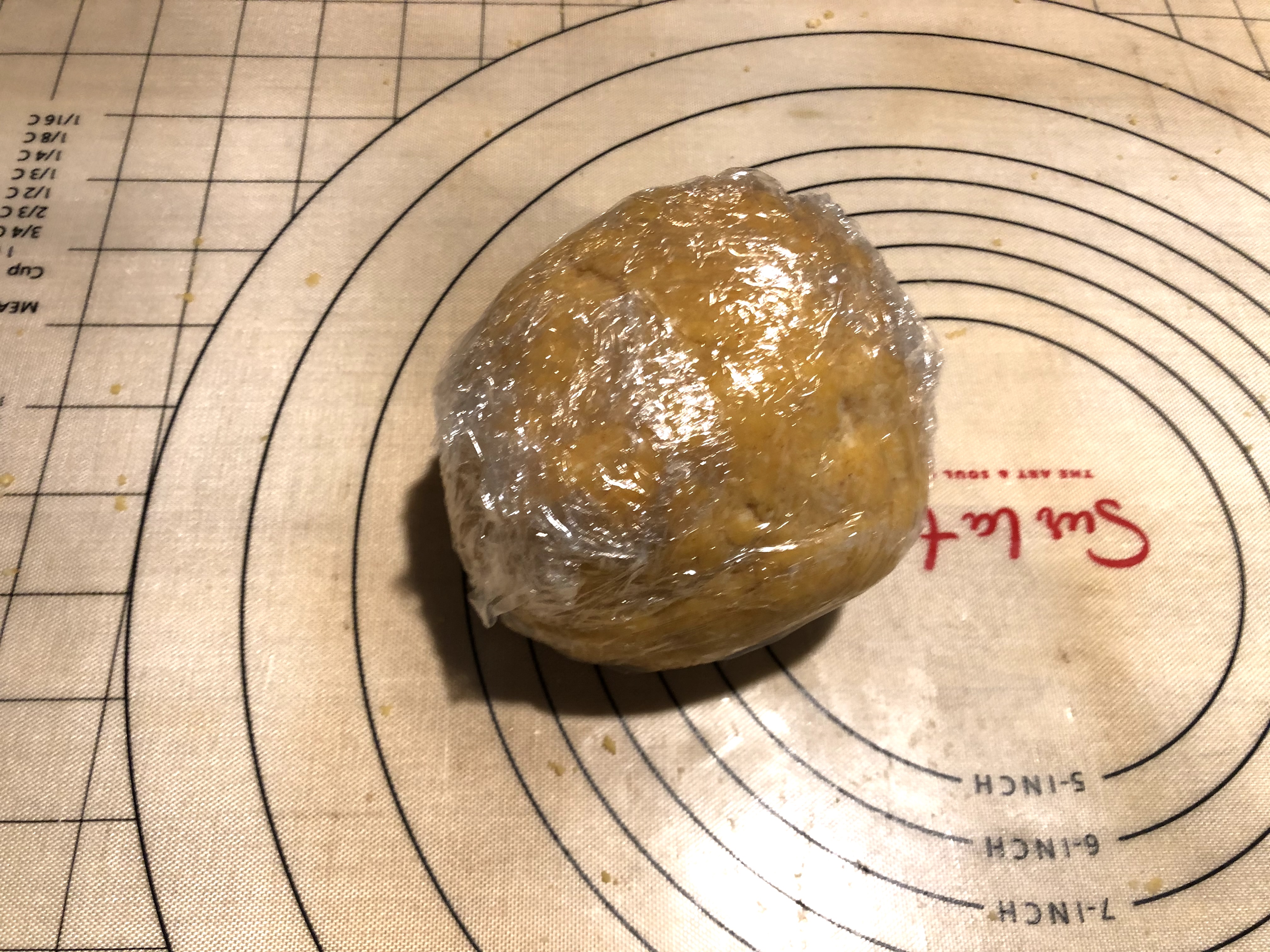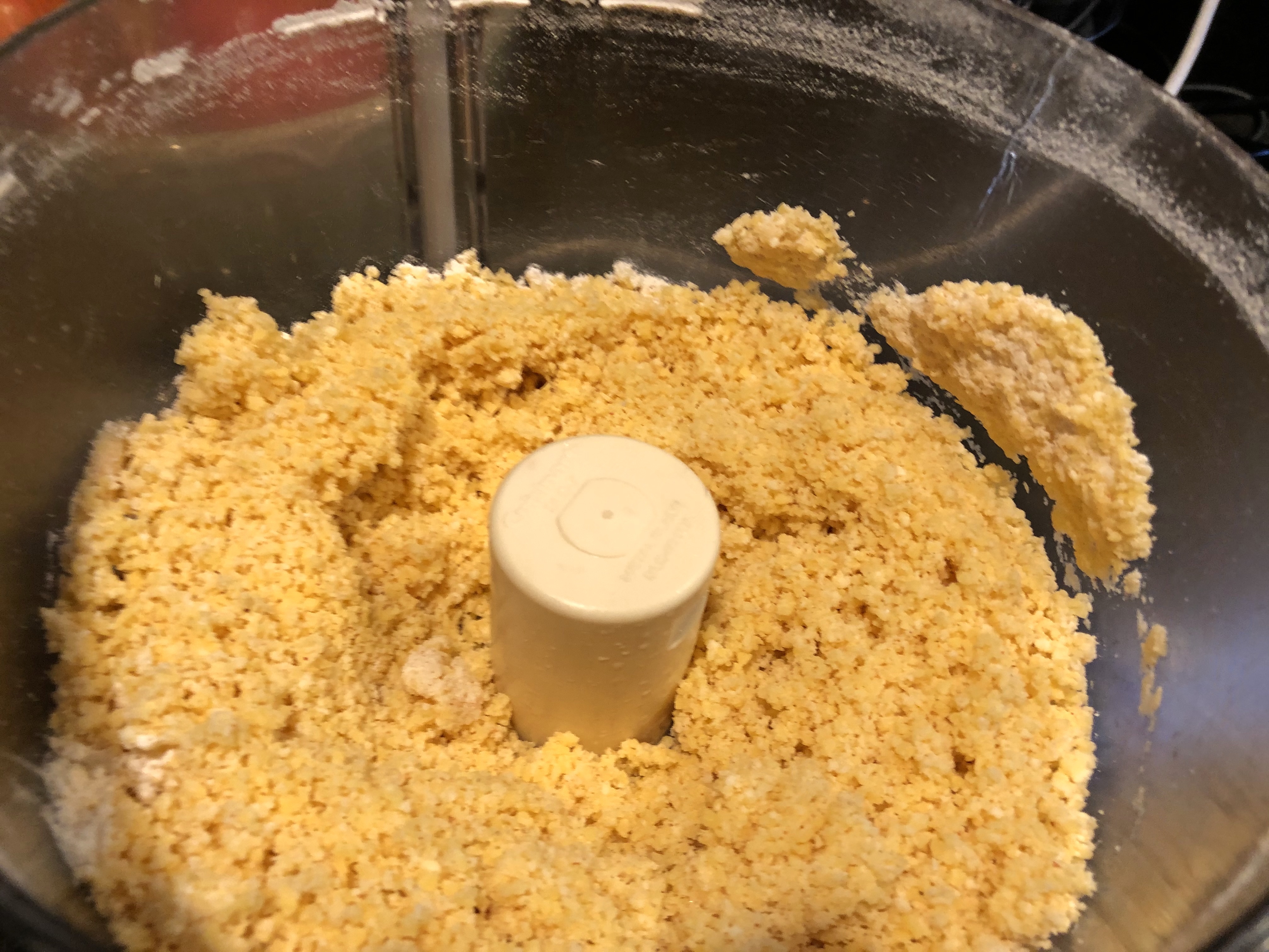 Put all ingredients in a food processor except for the ice water. Pulse until mixture resembles sand. Now add the ice water and pulse 4 to 5 times. Pour out onto your counter and form into a ball. Wrap the ball in plastic wrap, and refrigerate for at least an hour.